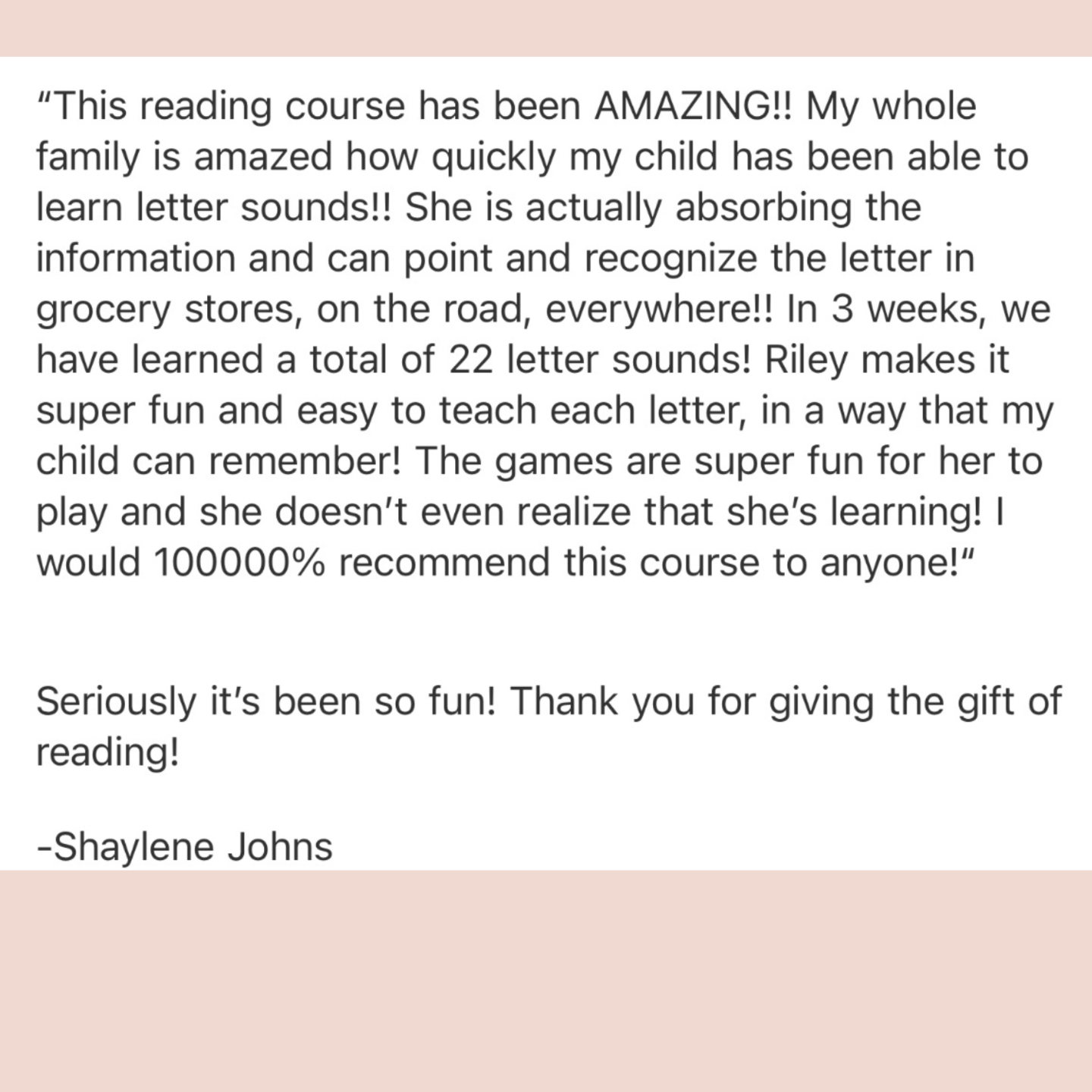 "This program changed everything for us...my child loves learning and coming to school and I love teaching her, it has been so much fun"