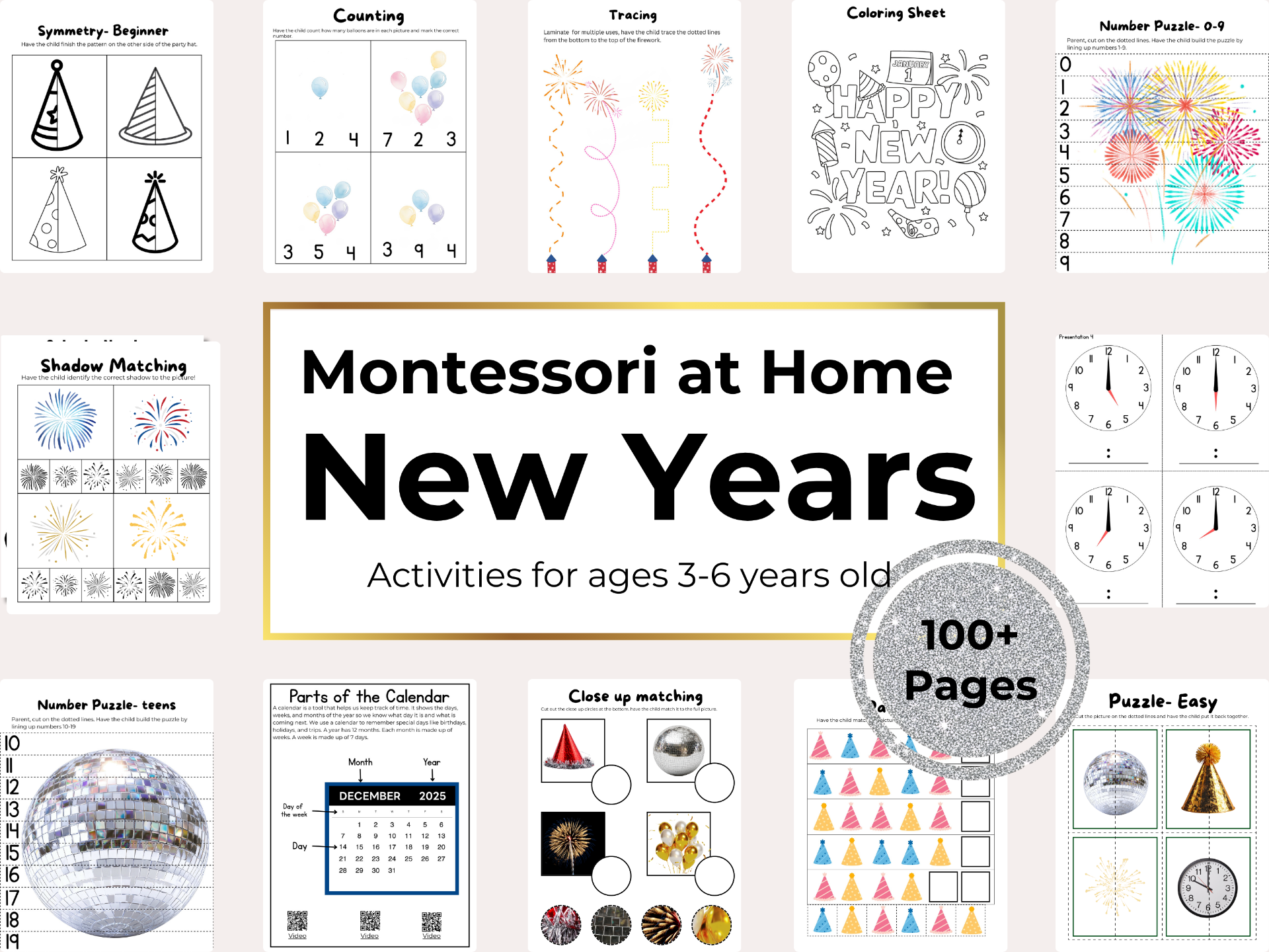 Celebrate fresh beginnings with this New Yearβs Study Unit: a thoughtfully designed 100+ page Montessori-inspired activity pack for children ages 2β6. This unit supports hands-on, child-led learning through engaging activities that build early math, language, fine motor, practical life, and cultural awareness skills, all centered around New Year themes. Learn concepts such as time, calendars, reflection, and goal setting. Perfect for homeschool, classrooms, or at-home learning, this printable encourages independence, curiosity, and meaningful learning as children explore the concept of a new year.